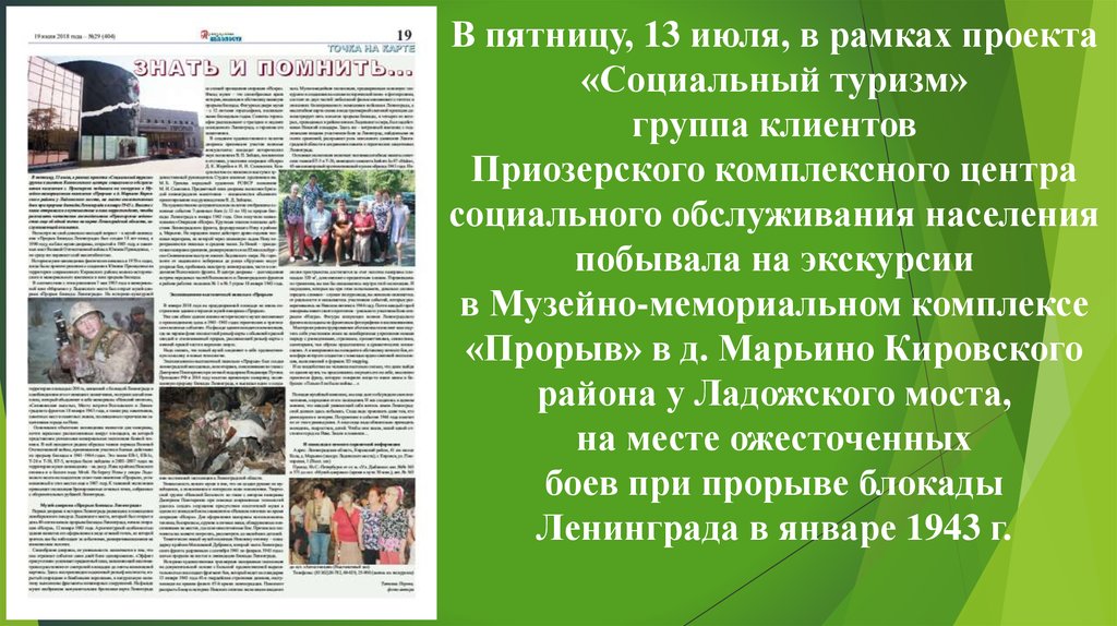 В пятницу, 13 июля, в рамках проекта«Социальный туризм»