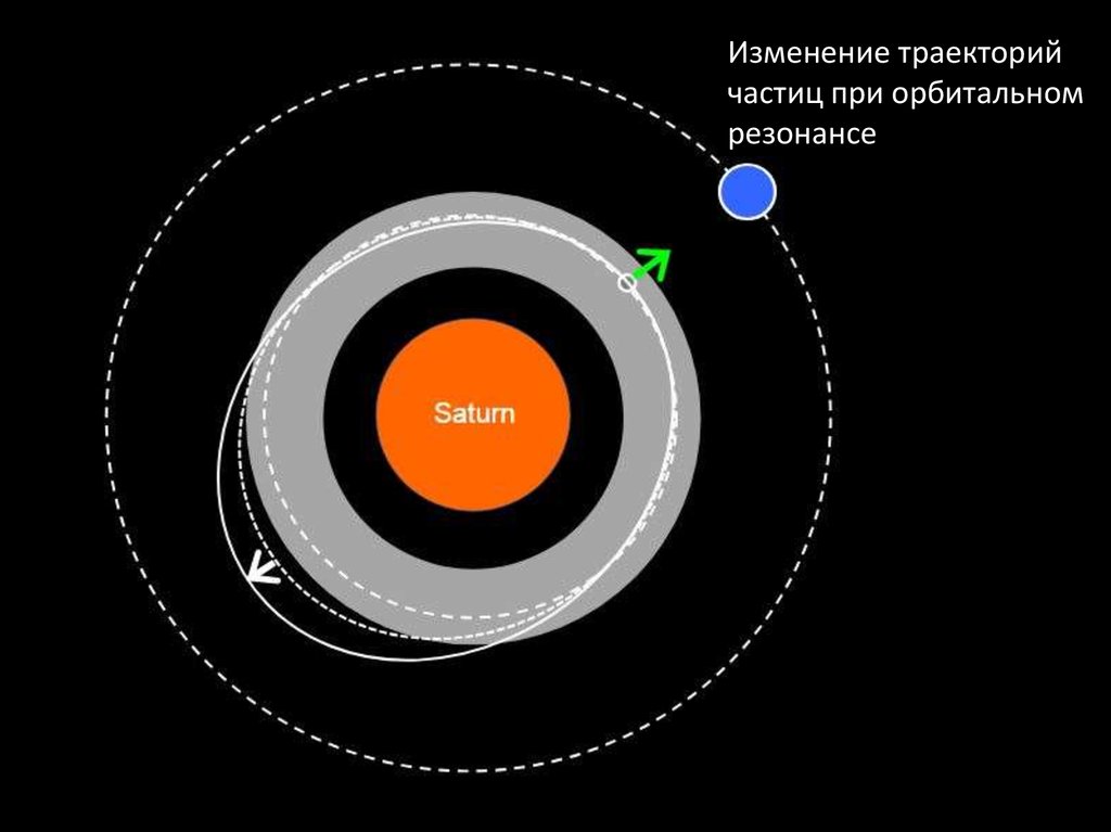 Схема движения частиц колец при воздействии спутников-пастуховПодробнее