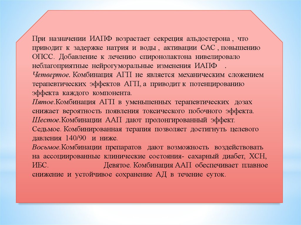 При назначении ИАПФ возрастает секреция альдостерона , чтоприводит к задержке натрия и воды , активации САС , повышению
