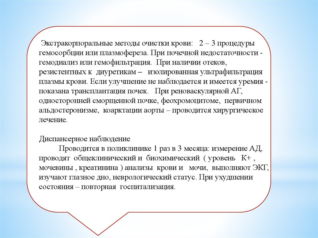 плазмы крови. Если улучшение не наблюдается и имеется уремия показана трансплантация почек. При реноваскулярной АГ,