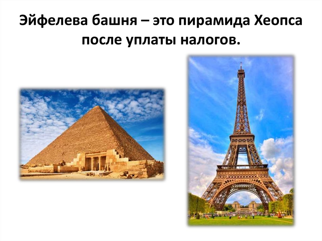 1. Эйфелева башня – это пирамида Хеопса после уплаты налогов.