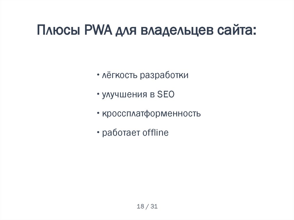 Плюсы PWA для владельцев сайта:лёгкость разработки