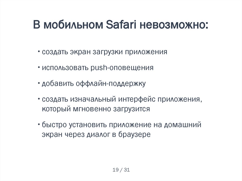 В мобильном Safari невозможно:создать экран загрузки приложения