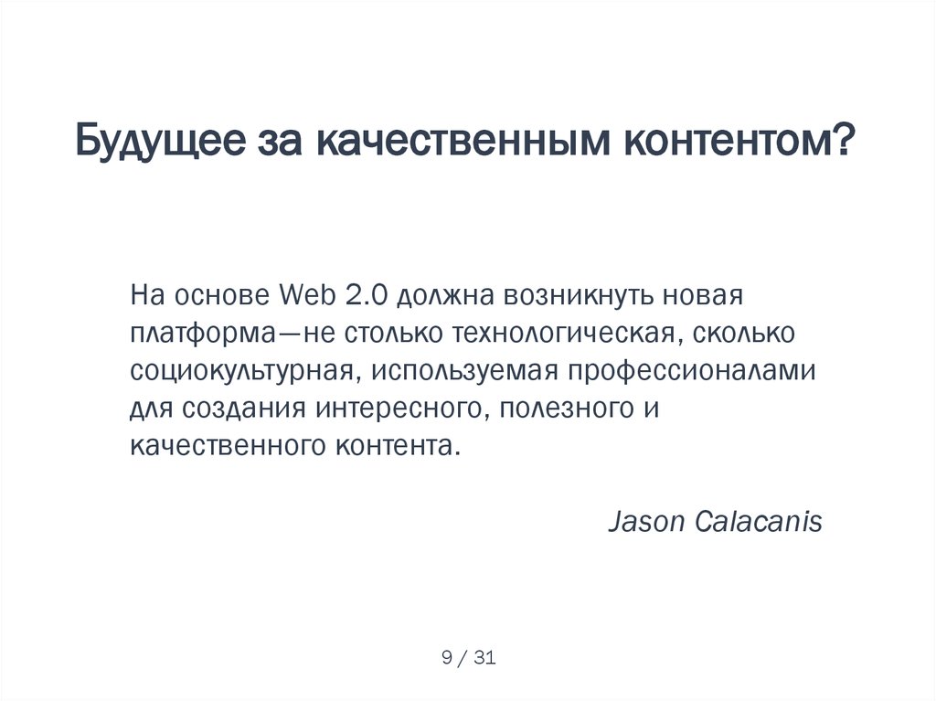 Будущее за качественным контентом?На основе Web 2.0 должна возникнуть новая