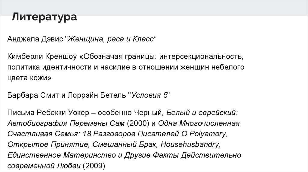 ЛитератураАнджела Дэвис "Женщина, раса и Класс"