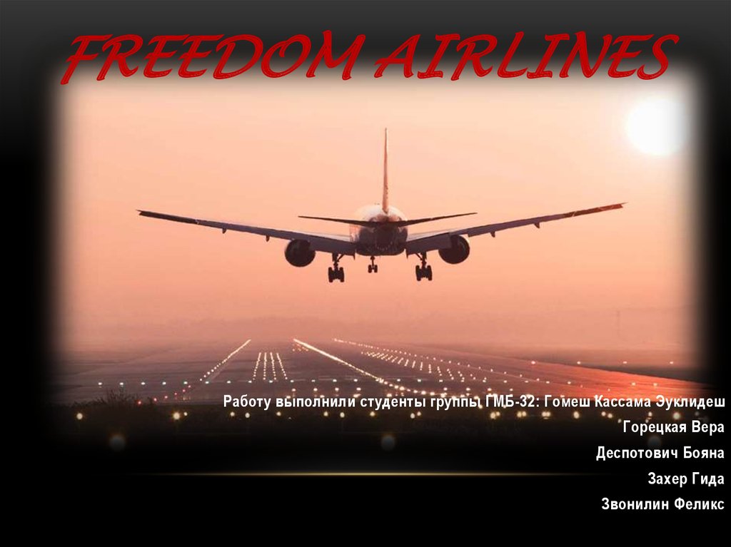 FREEDOM AIRLINESРаботу выполнили студенты группы ГМБ-32: Гомеш Кассама Эуклидеш
