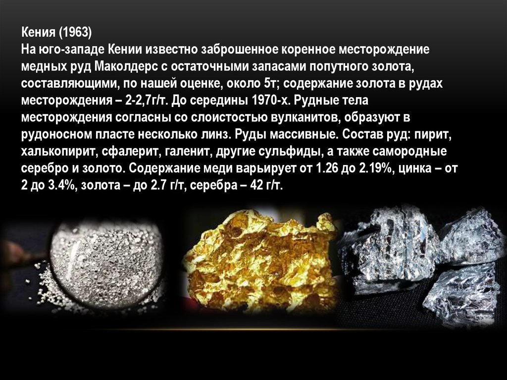Кения (1963)На юго-западе Кении известно заброшенное коренное месторождение