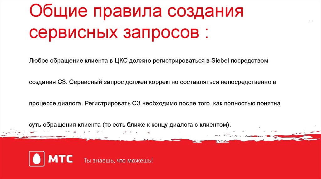 Общие правила создания сервисных запросов