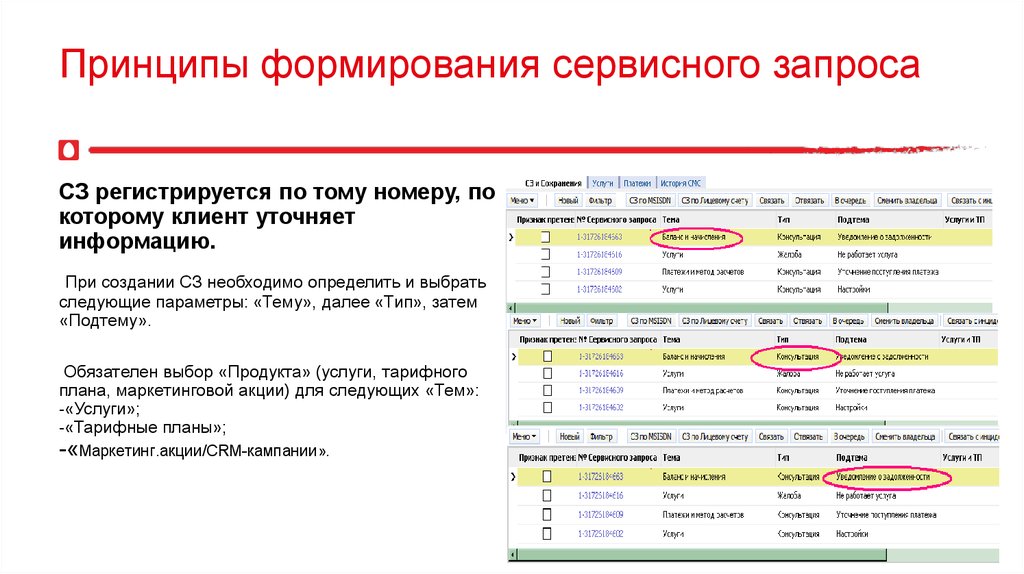 Принципы формирования сервисного запросаСЗ регистрируется по тому номеру, по