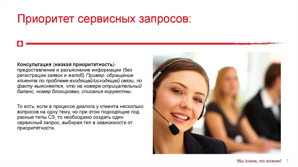 Приоритет сервисных запросов:Консультация (низкая приоритетность)предоставление и разъяснение информации (без