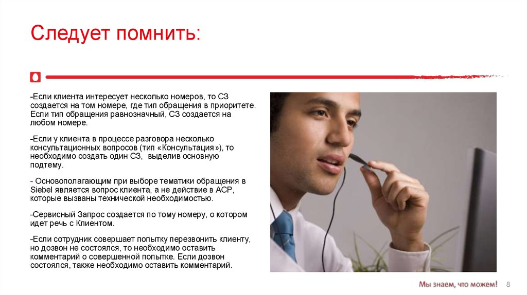 • Если для решения проблемы клиента проводится