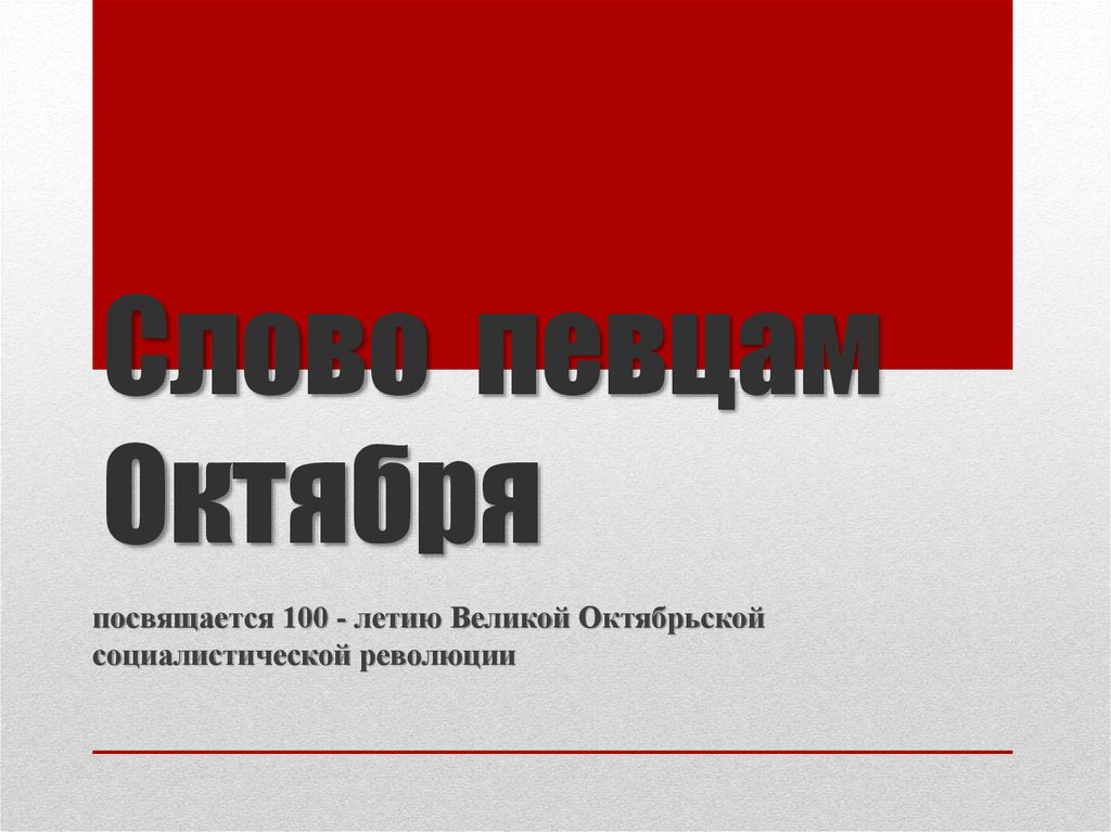 Слово певцам Октября. Посвящается 100 - летию Великой Октябрьской социалистической революции