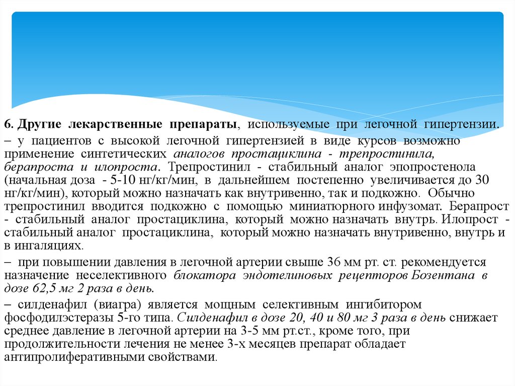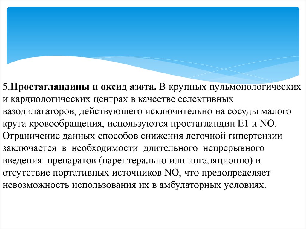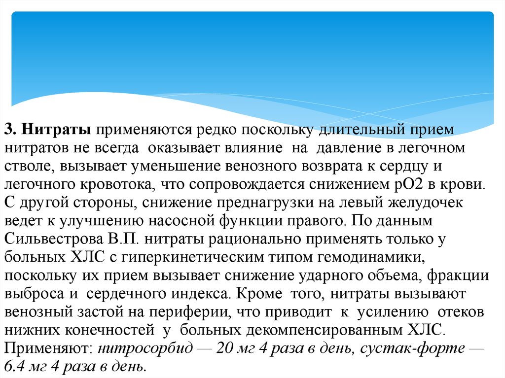 3. Нитраты применяются редко поскольку длительный приемнитратов не всегда оказывает влияние на давление в легочном