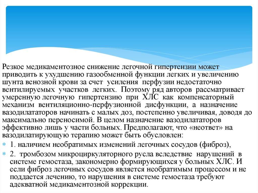 фоне лечения ими существенного изменения гемодинамики у больных ХЛС не