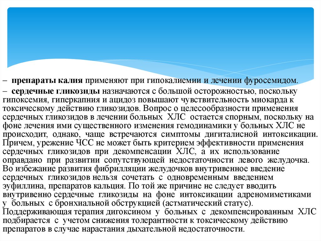 сердечных гликозидов в лечении больных ХЛС остается спорным, поскольку на