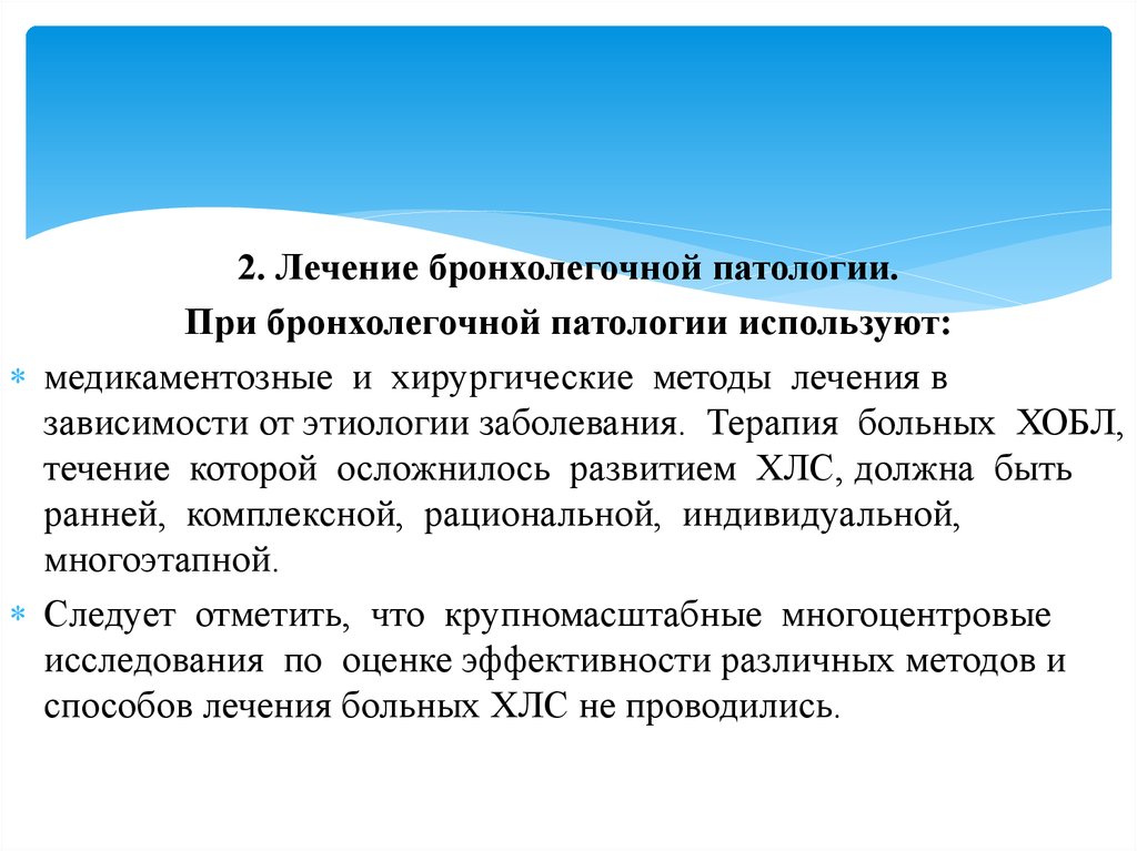 зависимости от этиологии заболевания. Терапия больных ХОБЛ,