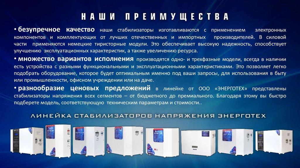 стабилизаторы напряжения всех сегментов – от бюджетного до премиального. Благодаря этому вы быстро