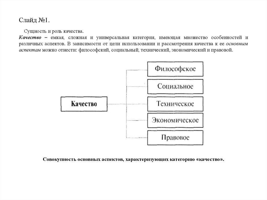 Совокупность основных аспектов, характеризующих категорию «качество».