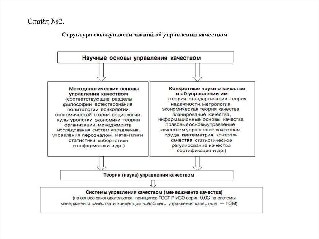 Слайд №2.Структура совокупности знаний об управлении качеством.