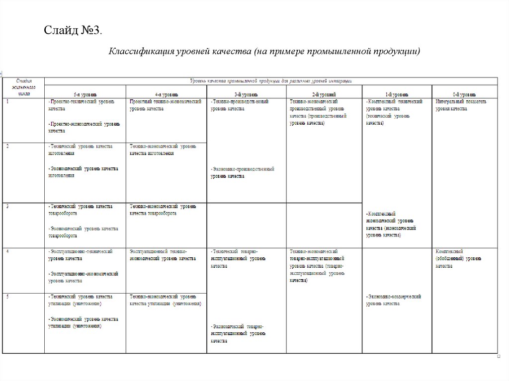 Слайд №3.Классификация уровней качества (на примере промышленной продукции)