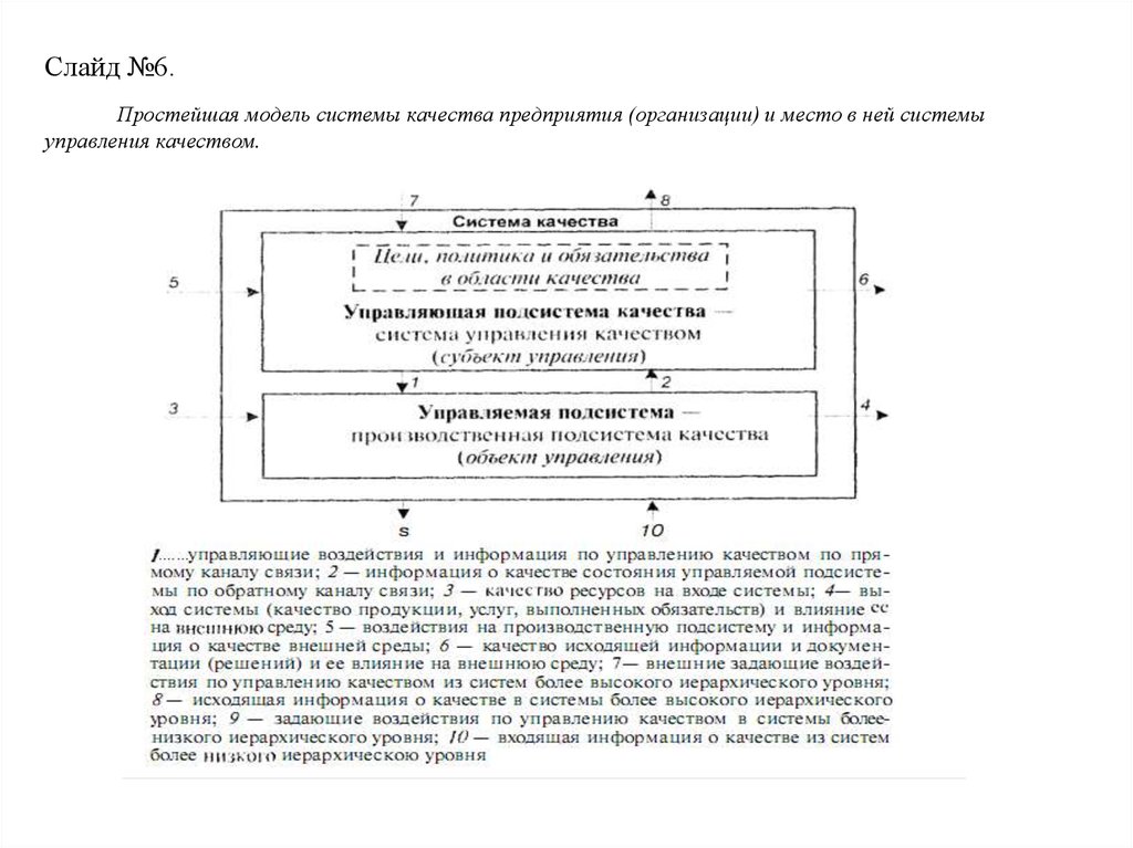 Слайд №6.Простейшая модель системы качества предприятия (организации) и место в ней системы