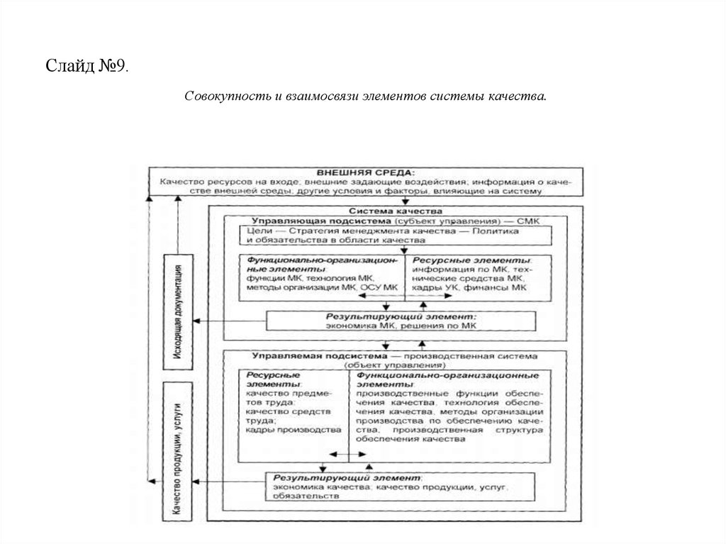 Слайд №9.Совокупность и взаимосвязи элементов системы качества.