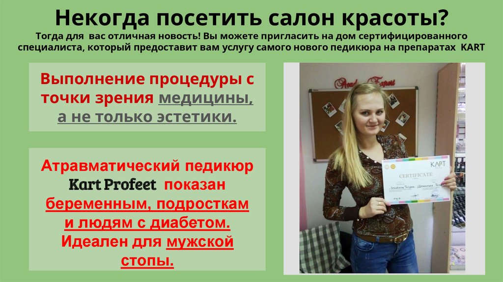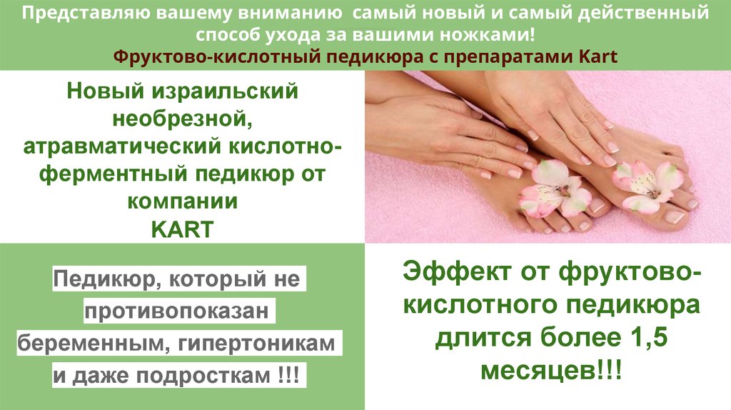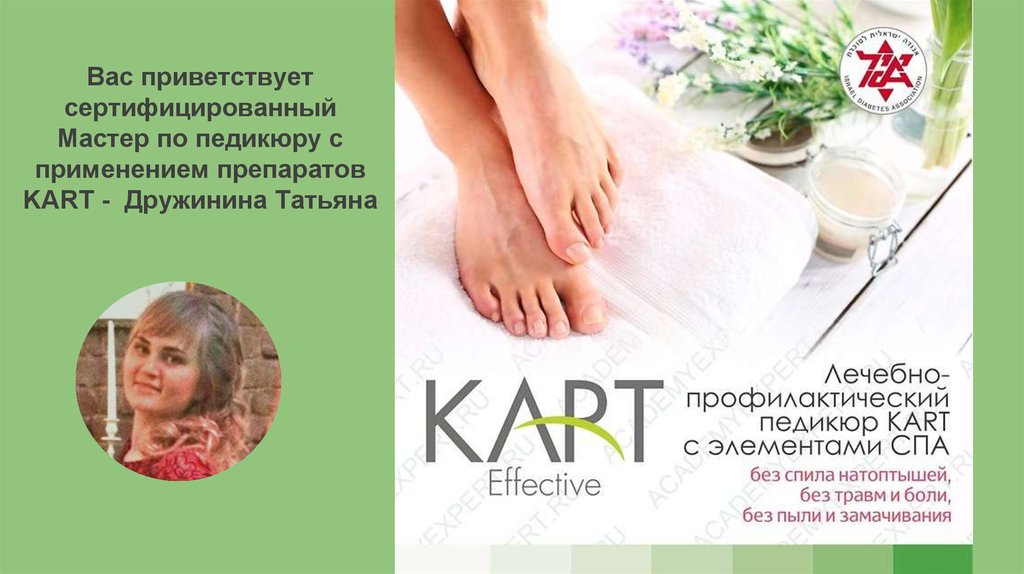 специалиста, который предоставит вам услугу самого нового педикюра на препаратах KART