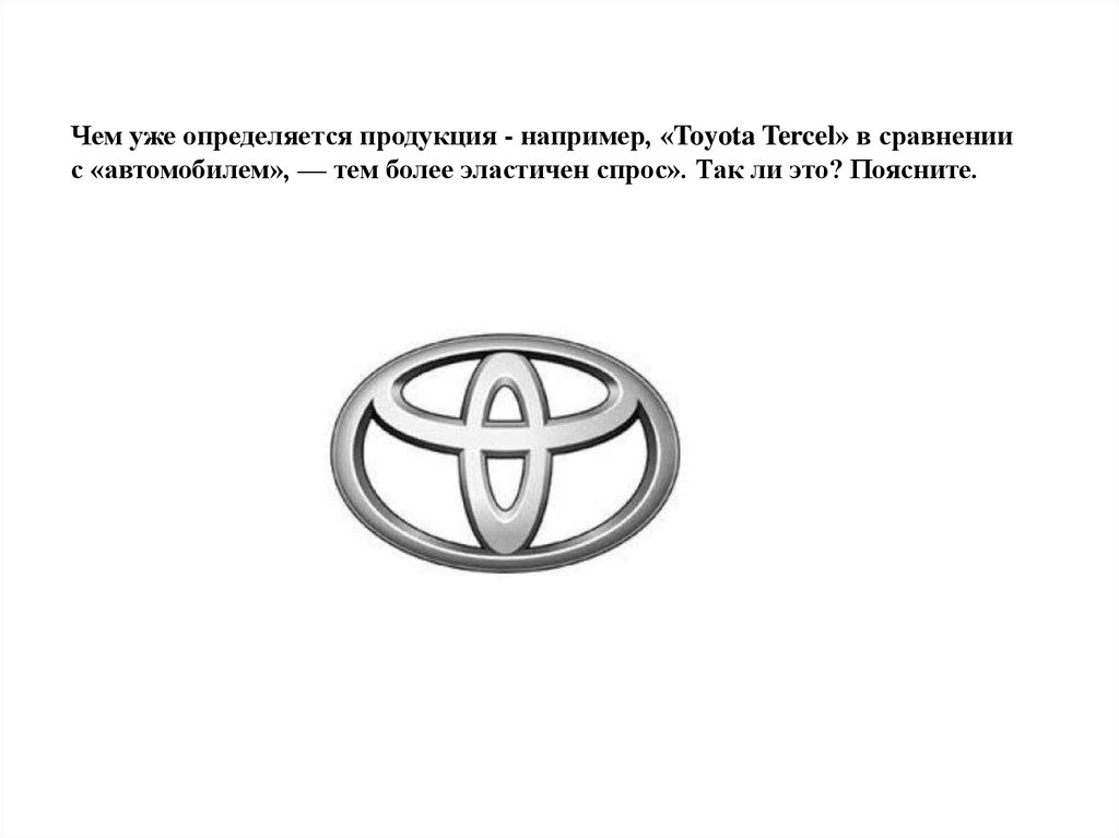 Чем уже определяется продукция - например, «Toyota Tercel» в сравнениис «автомобилем», — тем более эластичен спрос». Так ли это? Поясните.