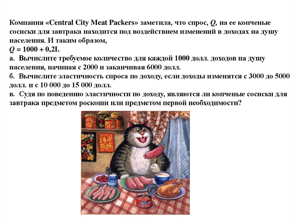 Компания «Central City Meat Packers» заметила, что спрос, Q, на ее копченыесосиски для завтрака находится под воздействием изменений в доходах на душу