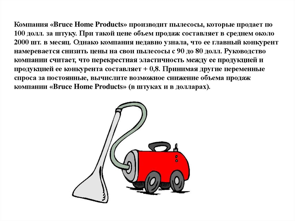 Компания «Bruce Home Products» производит пылесосы, которые продает по100 долл. за штуку. При такой цене объем продаж составляет в среднем около