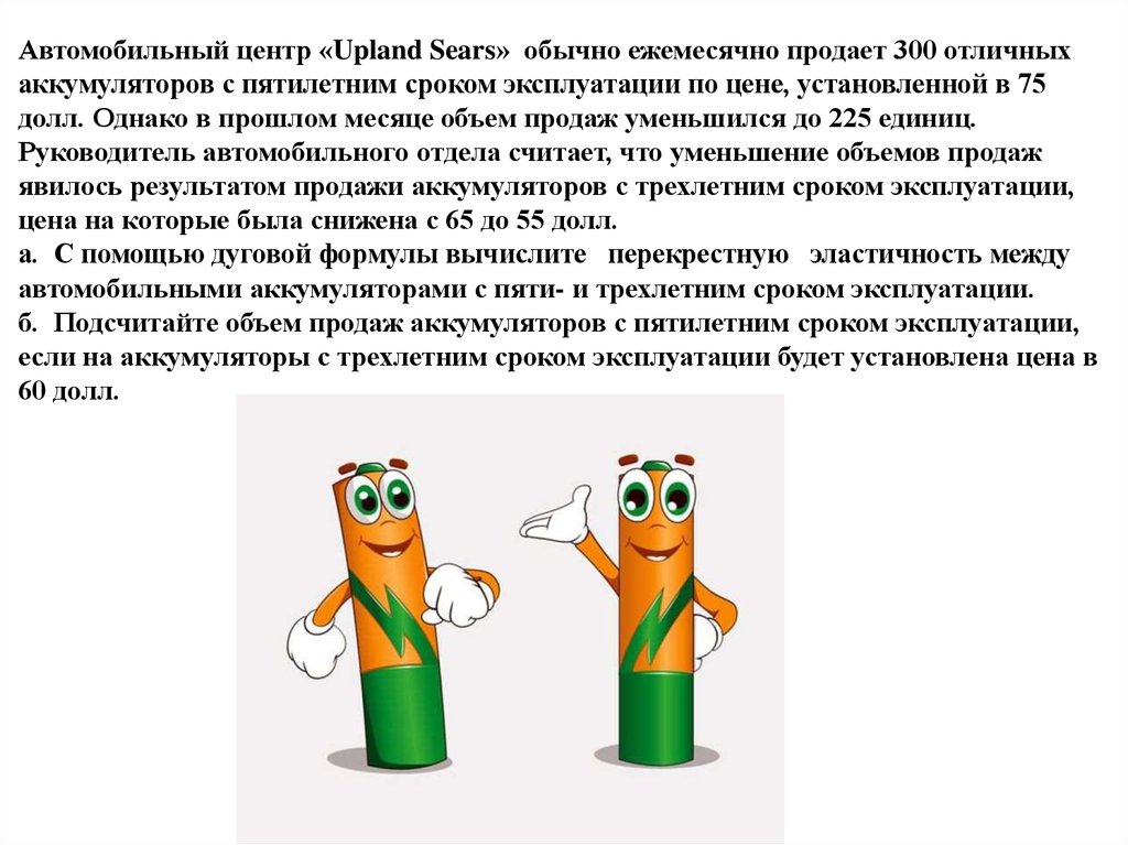Автомобильный центр «Upland Sears» обычно ежемесячно продает 300 отличныхаккумуляторов с пятилетним сроком эксплуатации по цене, установленной в 75