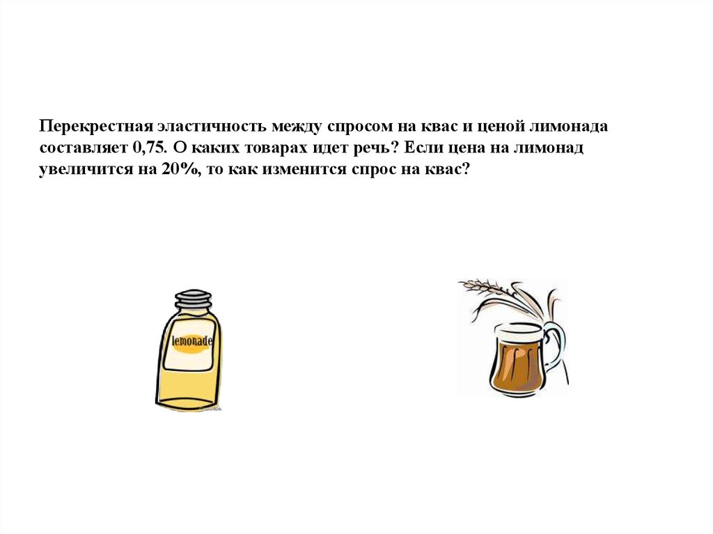 Перекрестная эластичность между спросом на квас и ценой лимонадасоставляет 0,75. О каких товарах идет речь? Если цена на лимонад