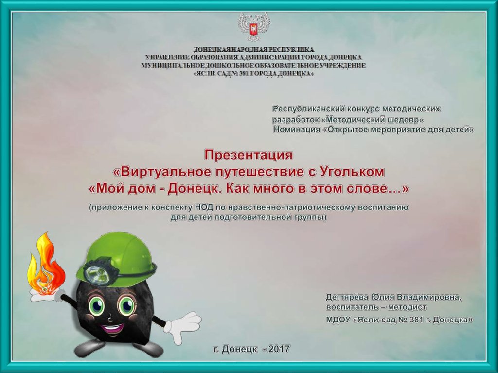 Виртуальное путешествие с Угольком. «Мой дом - Донецк. Как много в этом слове...». Для детей подготовительной группы