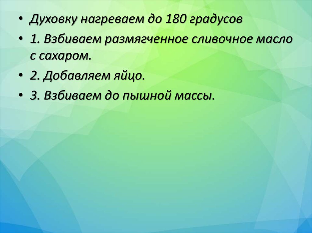 • Духовку нагреваем до 180 градусов• 1. Взбиваем размягченное сливочное масло
