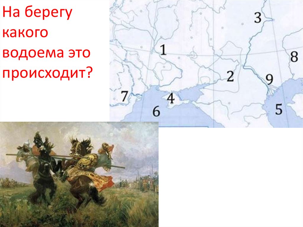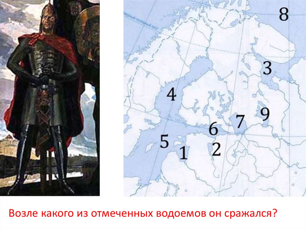 Возле какого из отмеченных водоемов он сражался?9.