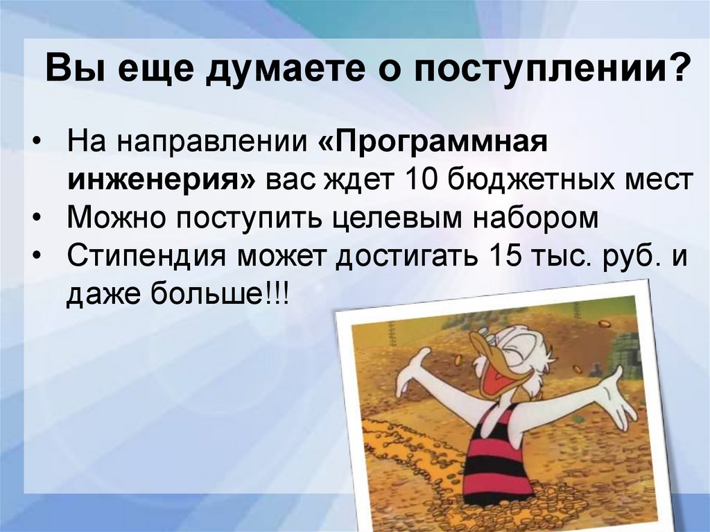 Вы еще думаете о поступлении?• На направлении «Программная