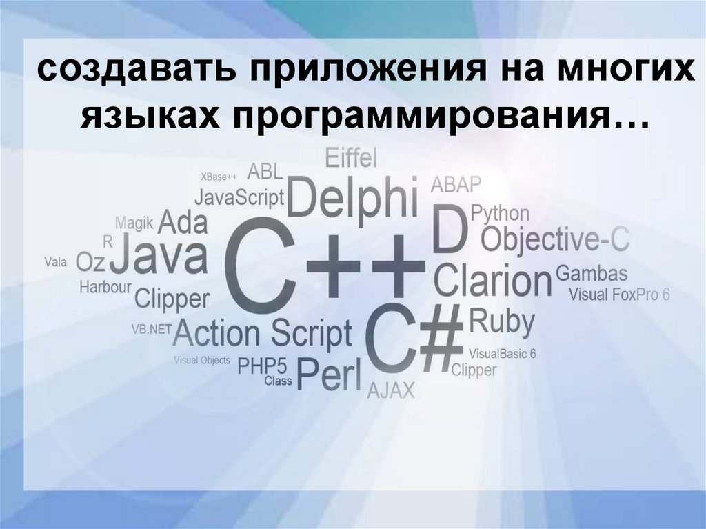 создавать приложения на многихязыках программирования…
