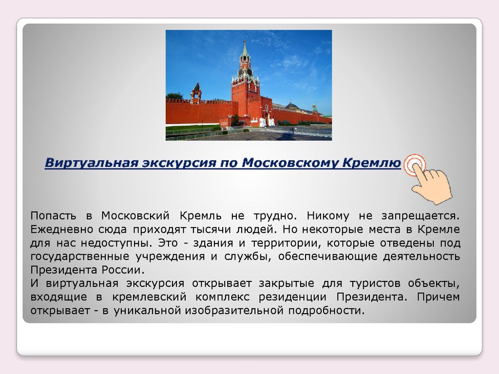 Попасть в Московский Кремль не трудно. Никому не запрещается.Ежедневно сюда приходят тысячи людей. Но некоторые места в Кремле