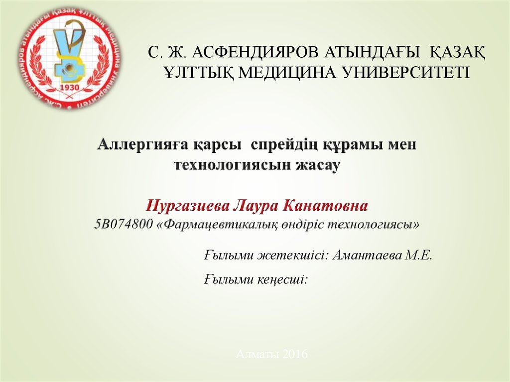 1. С. Ж. АСФЕНДИЯРОВ АТЫНДАҒЫ ҚАЗАҚ ҰЛТТЫҚ МЕДИЦИНА УНИВЕРСИТЕТІ