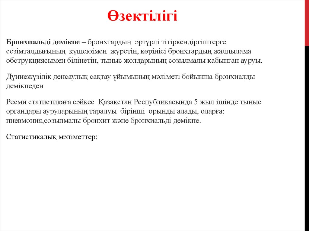 ӨзектілігіБронхиальді демікпе – бронхтардың әртүрлі тітіркендіргіштерге