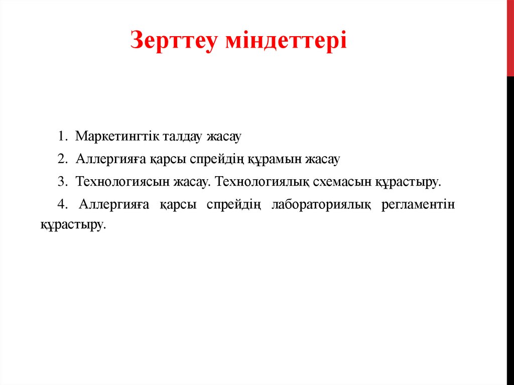 Зерттеу мақсатыАллергияға қарсы әсер көрсететін