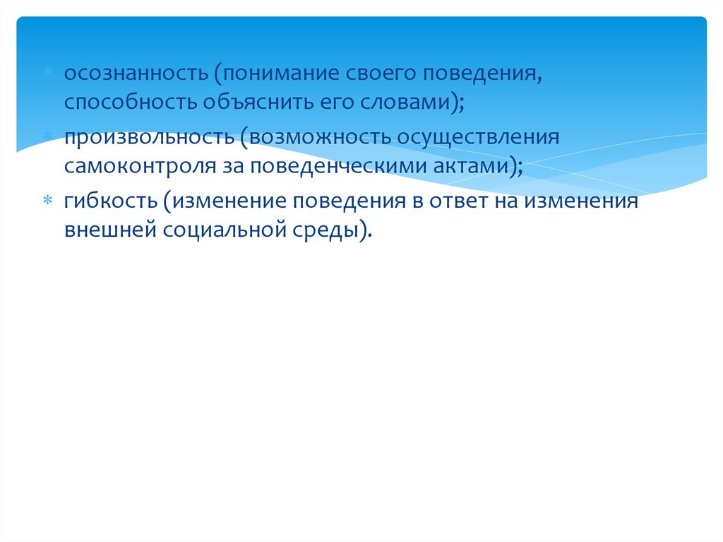 осознанность (понимание своего поведения,способность объяснить его словами);