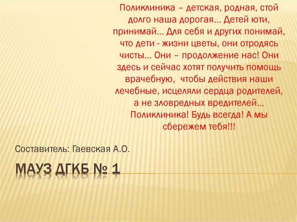 Поликлиника – детская, родная, стойдолго наша дорогая… Детей юти,