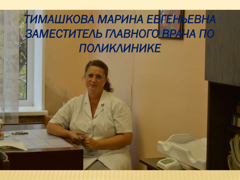 ТИМАШКОВА МАРИНА ЕВГЕНЬЕВНАЗАМЕСТИТЕЛЬ ГЛАВНОГО ВРАЧА ПО