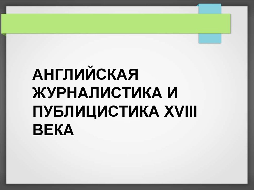 АНГЛИЙСКАЯЖУРНАЛИСТИКА И