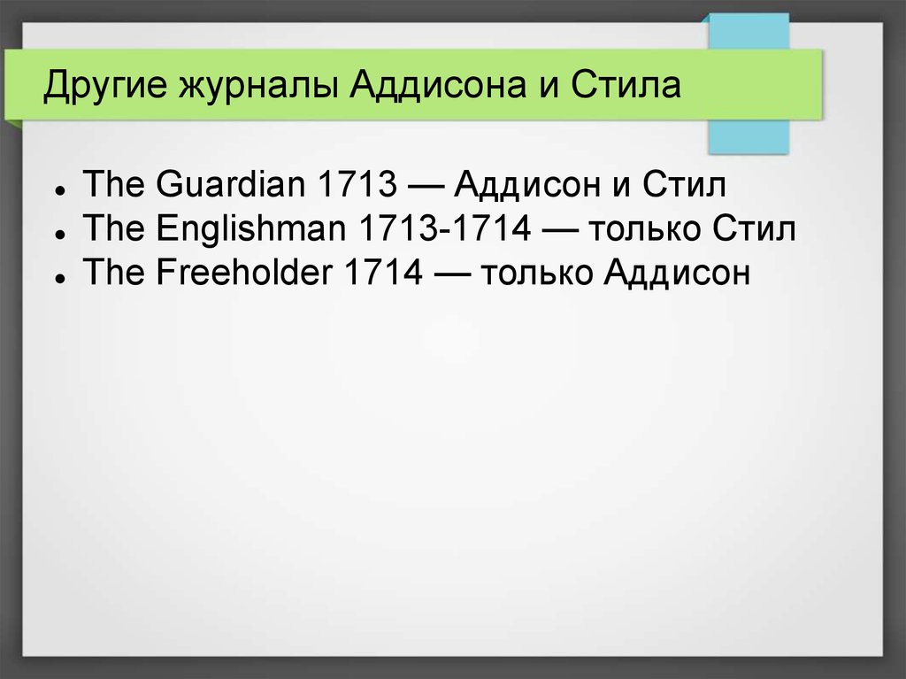 Другие журналы Аддисона и СтилаThe Guardian 1713 — Аддисон и Стил
