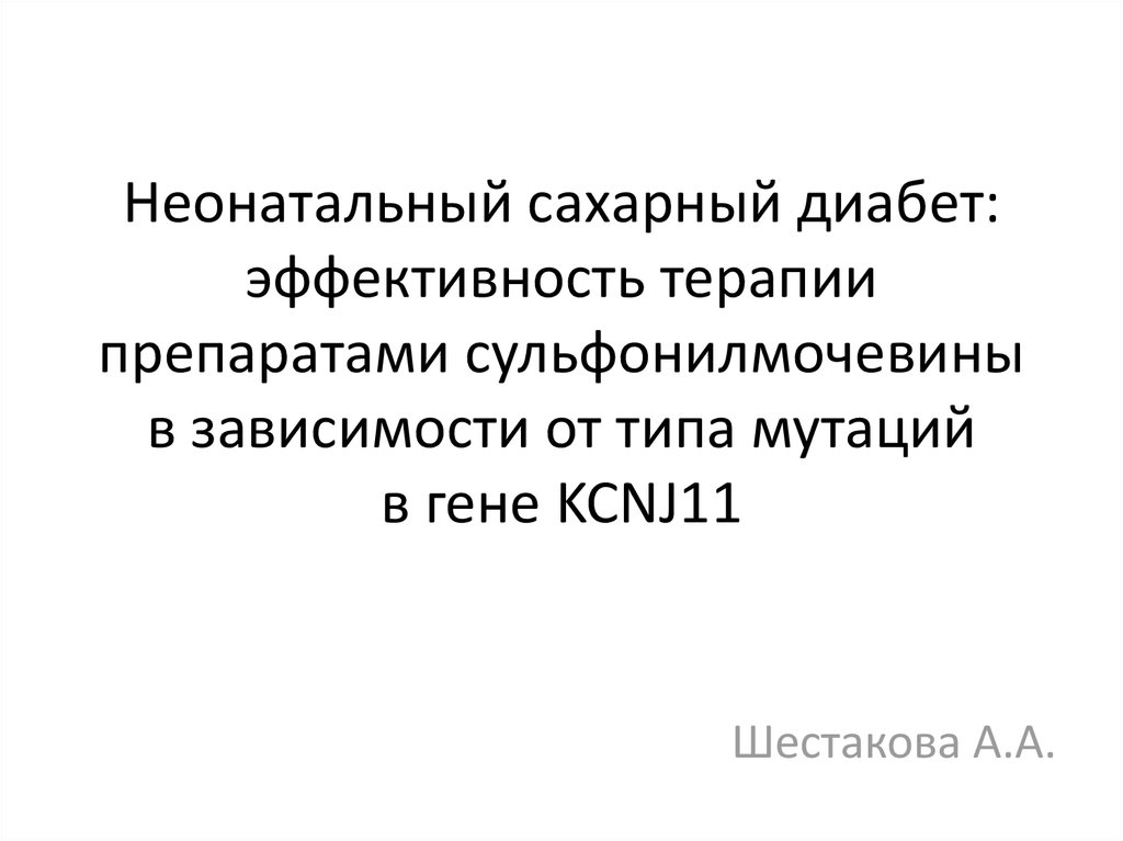 1. Неонатальный сахарный диабет: эффективность терапии препаратами сульфонилмочевины в зависимости от типа мутаций в гене KCNJ11