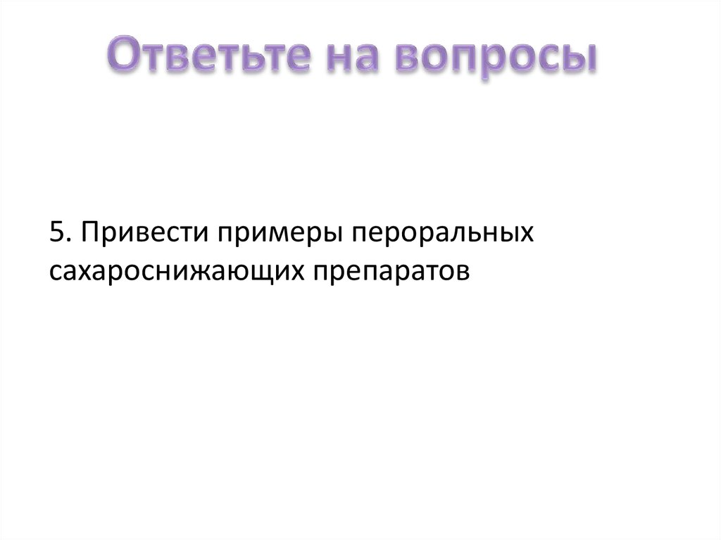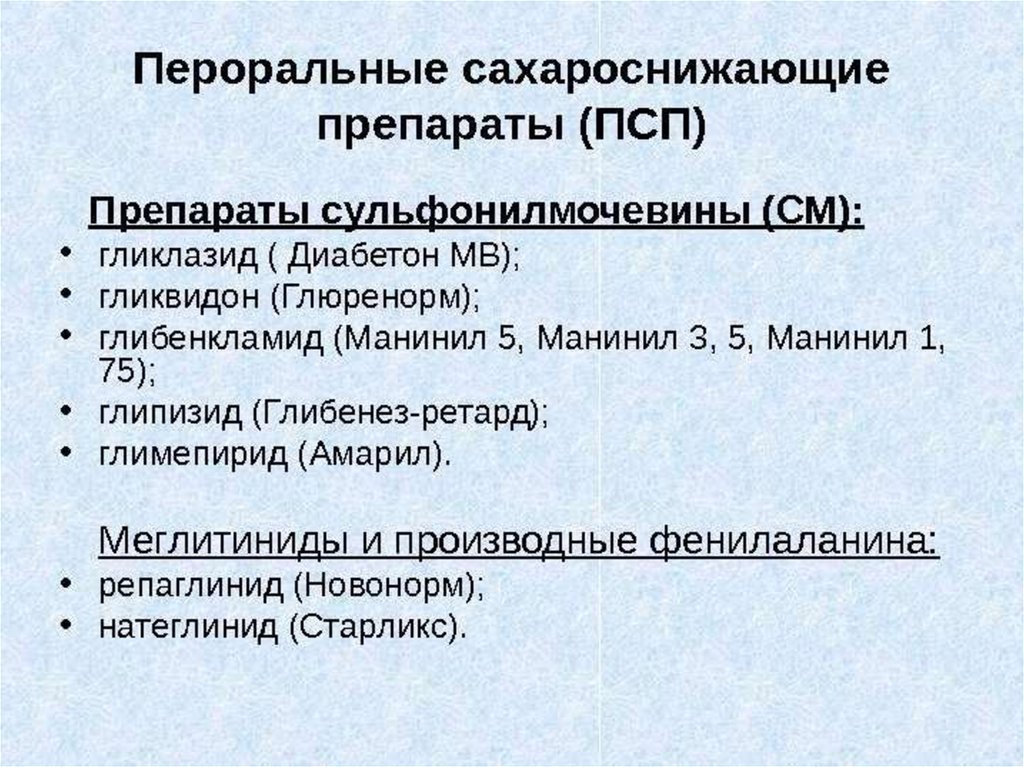5. Привести примеры пероральныхсахароснижающих препаратов