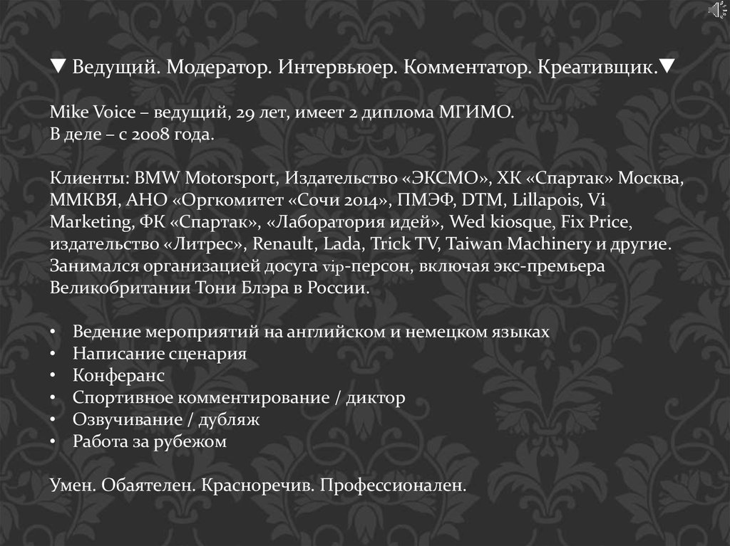 Ведущий. Модератор. Интервьер. Комментатор. Креативщик