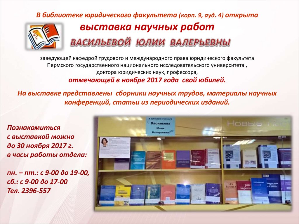 В библиотеке юридического факультета (корп. 9, ауд. 4) открытавыставка научных работ